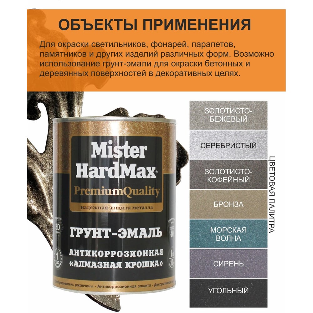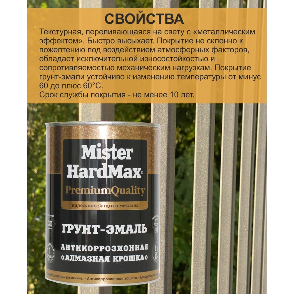 Грунт-эмаль HardMax Алмазная крошка антикоррозионная, серебристая, банка 1 кг 4690417070725