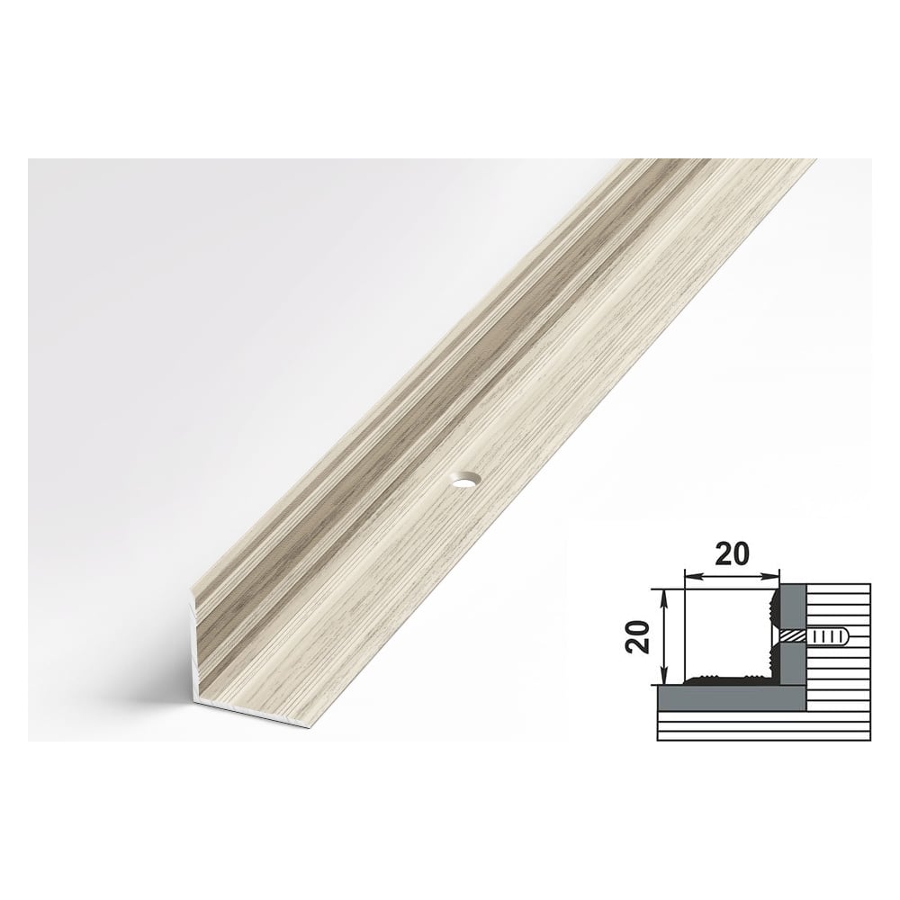 Порог угловой внутренний алюминиевый (20х20 мм; 0.9 м; декоративный; клен беленый) Лука 00000001801