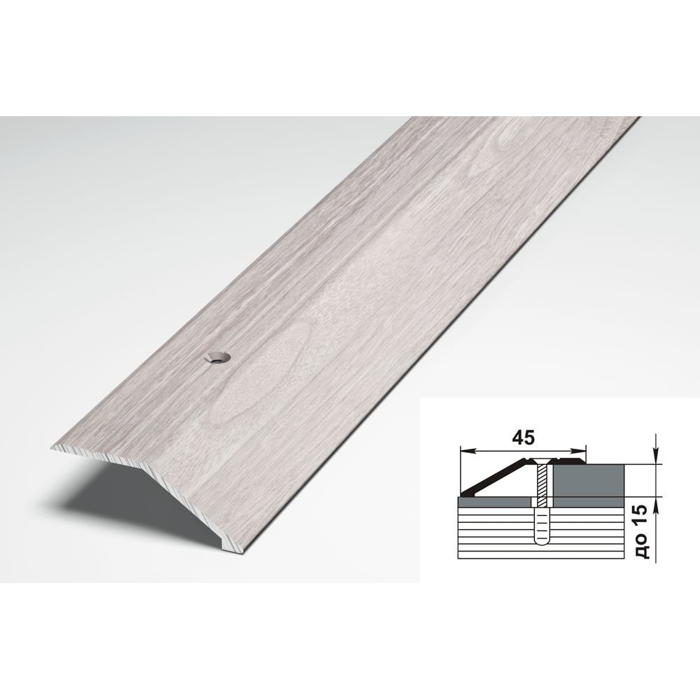 Порог разноуровневый алюминиевый (45 мм; 0.9 м; декоративный; ясень белый) Лука УТ000022019