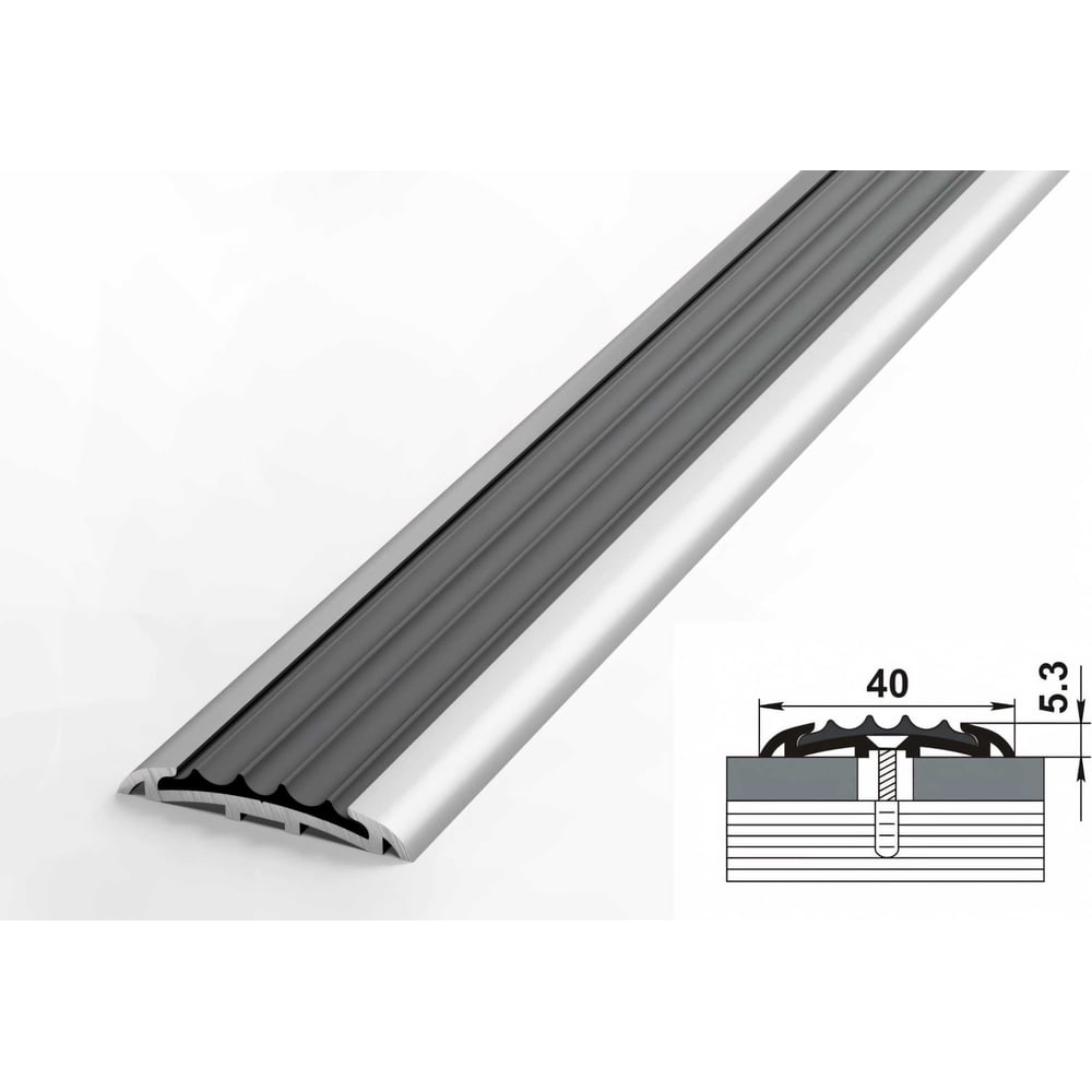Порог прямой алюминиевый (40 мм; 1.8 м; без покрытия; серая резинка) Лука УТ000024448