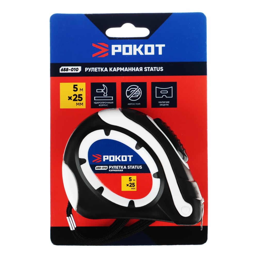 Карманная рулетка РОКОТ STATUS автостоп, 5мх25мм 658-010