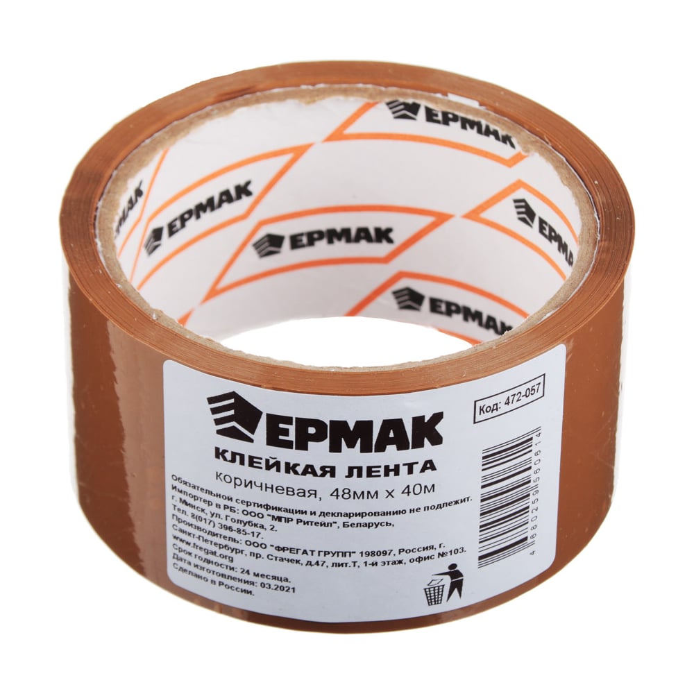 Клейкая лента ЕРМАК коричневая, 48мм x 40м 472-057