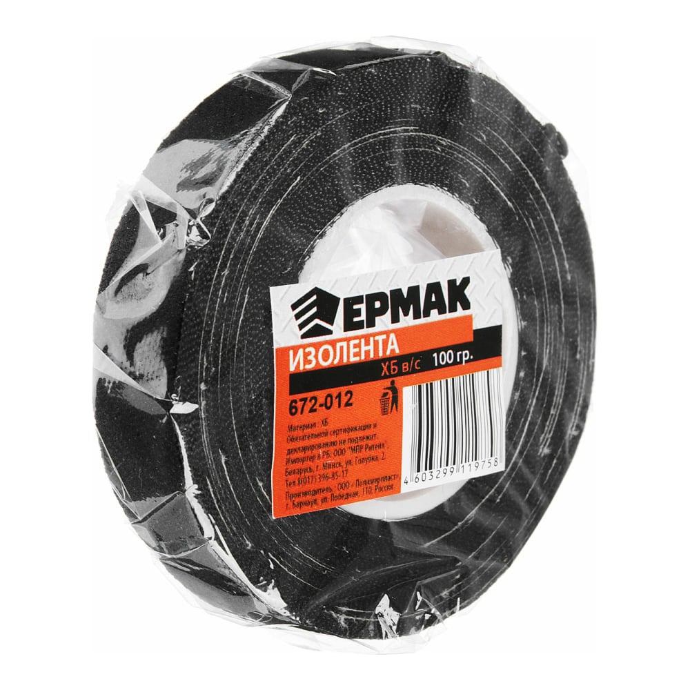 Изолента ЕРМАК ХБ в/с, 100 гр, шир. 20+-2 мм, 9 м, толщ. 0,35 мм 672-012