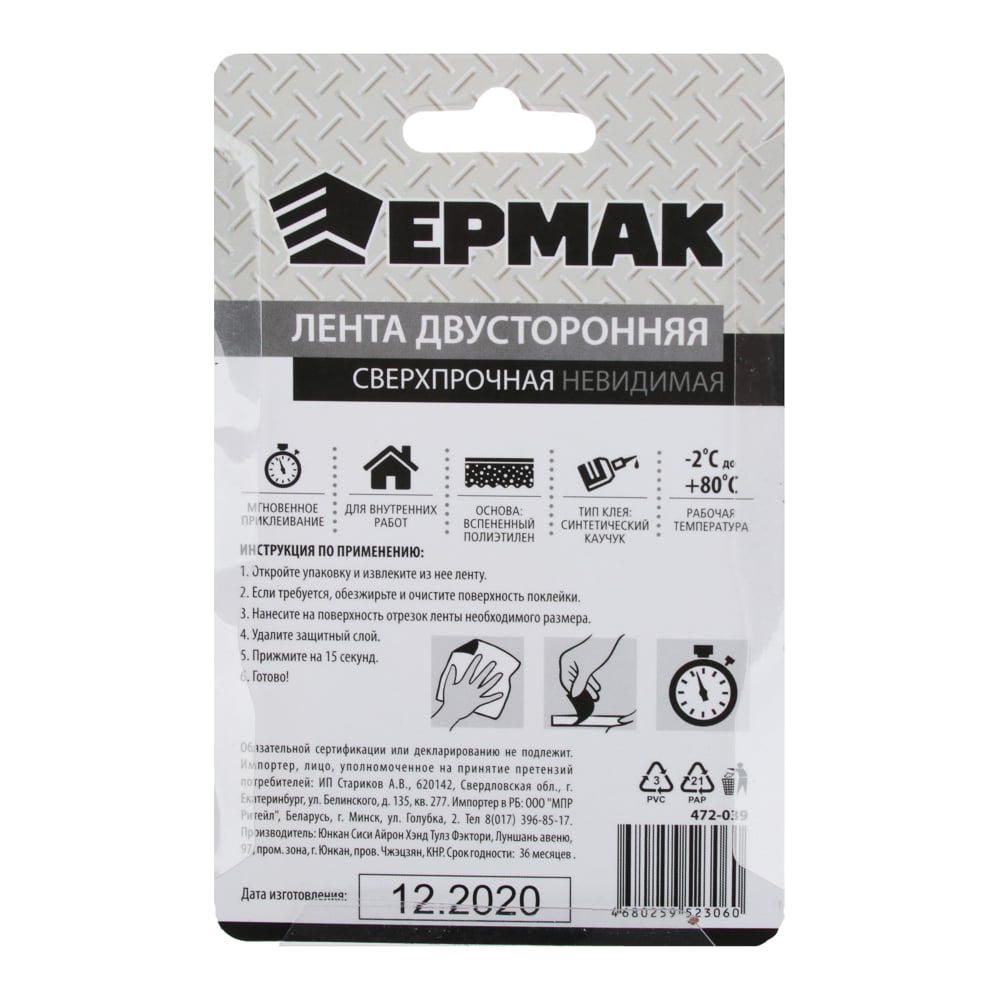 Сверхпрочная двусторонняя лента ЕРМАК 472-039