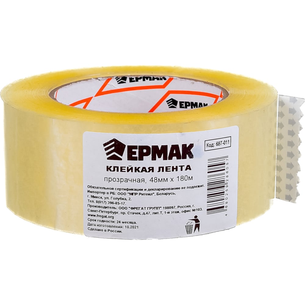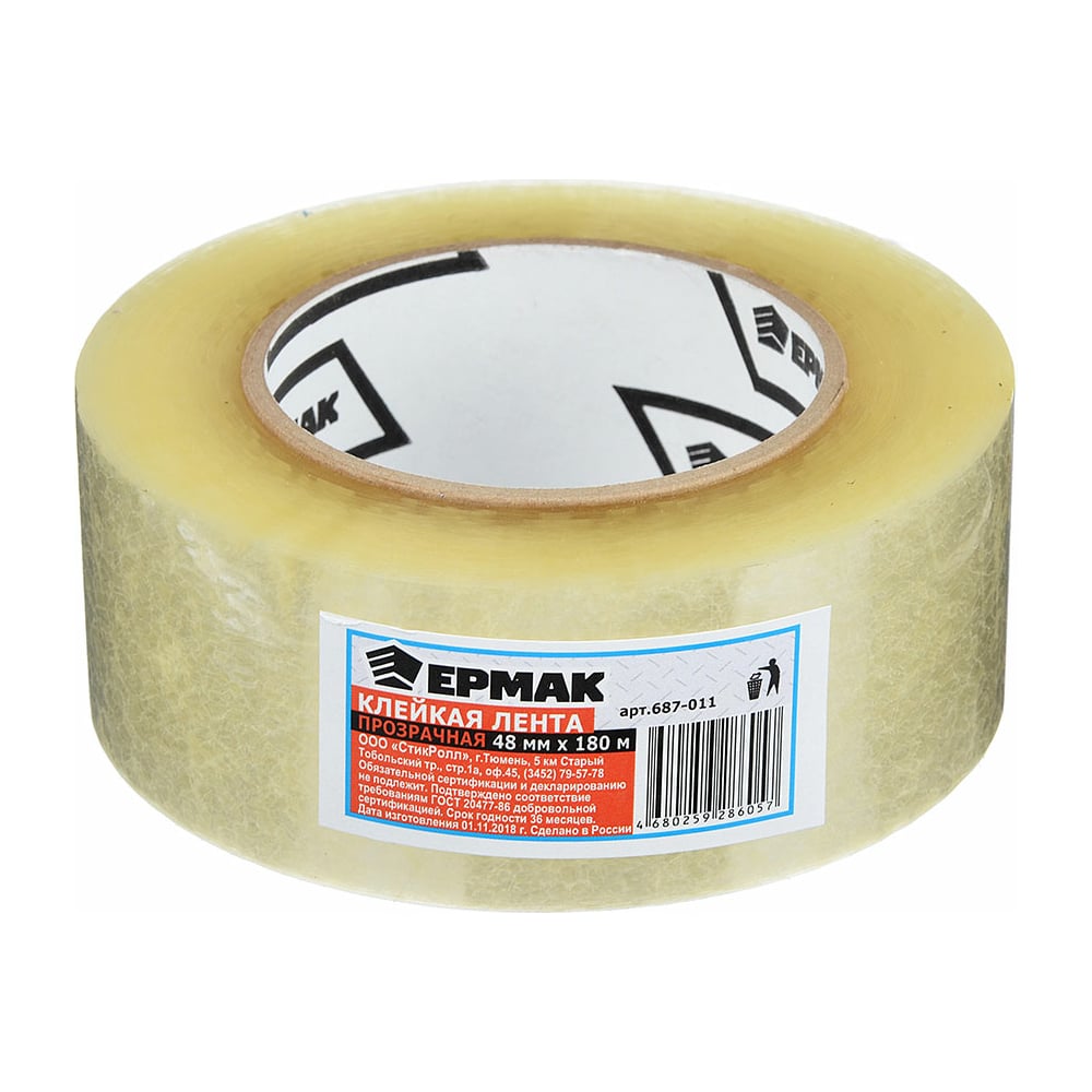 Клейкая лента ЕРМАК прозрачная, 48мм x 180м 687-011