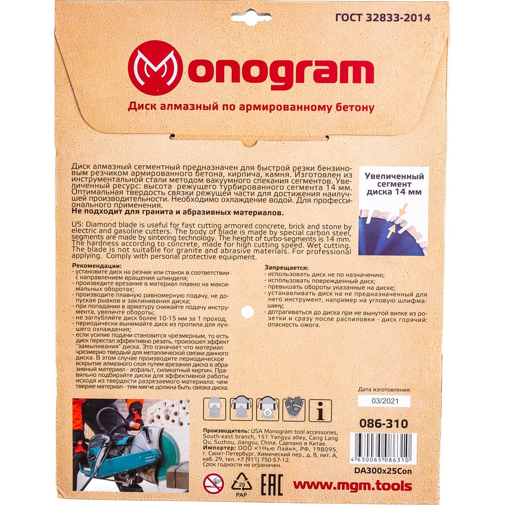 Турбосегментный алмазный диск MONOGRAM Special 086-310