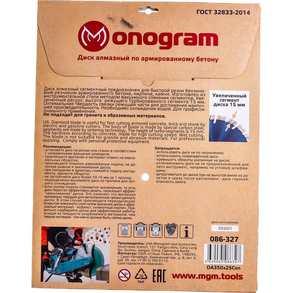 Турбосегментный алмазный диск MONOGRAM Special 086-327