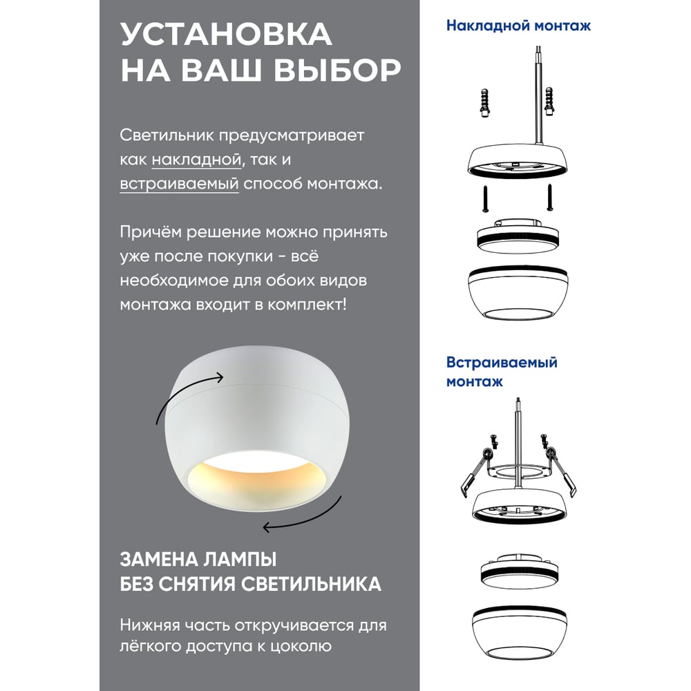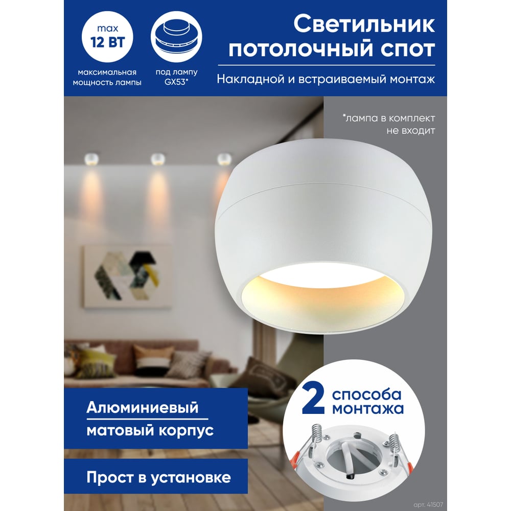 Светильник для натяжных потолков FERON HL355 12W, 230V, GX53, белый 41507