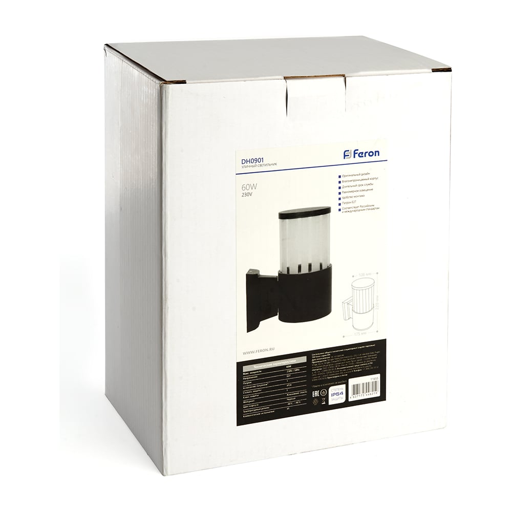 Садово-парковый светильник FERON DH0901 на стену вверх 230V E27 черный 11655