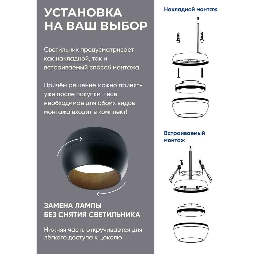 Светильник для натяжных потолков FERON HL355 12W, 230V, GX53, черный 41508