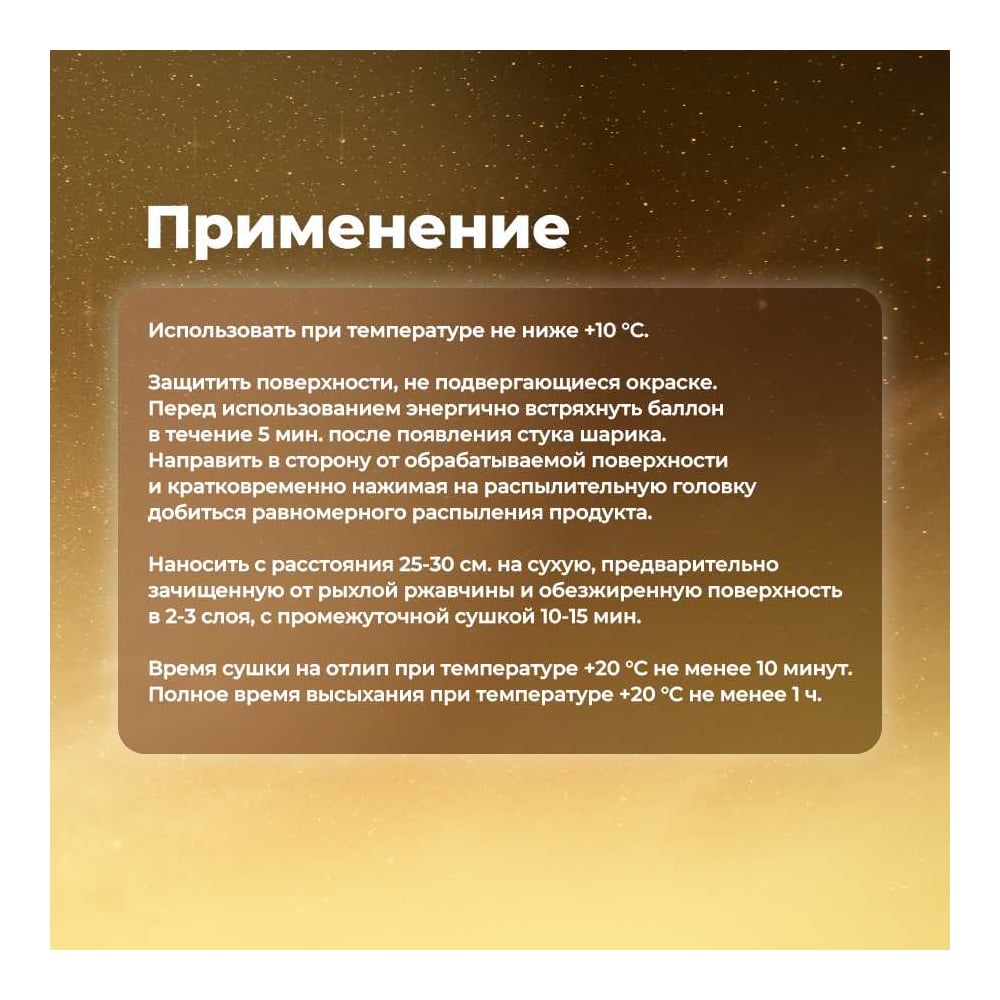 | Способ нанесения | аэрозольное распыление |