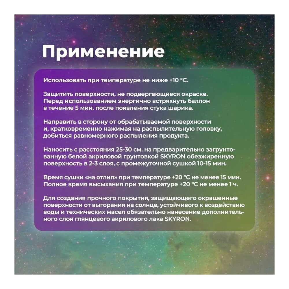 | Способ нанесения | аэрозольное распыление |
