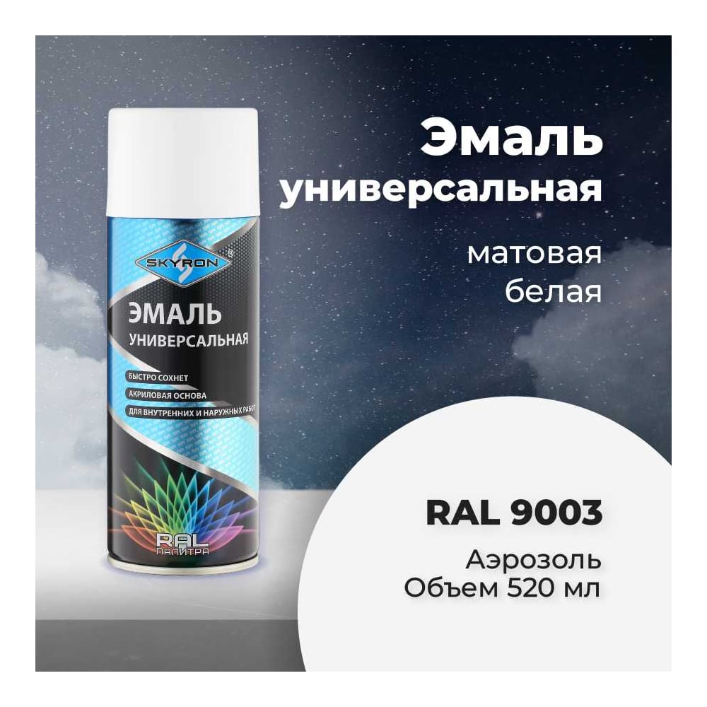Универсальная акриловая эмаль SKYRON белая матовая RAL9003 SR-10903