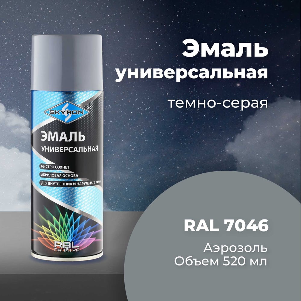 Универсальная акриловая эмаль SKYRON тёмно-серая RAL7046 SR-17046