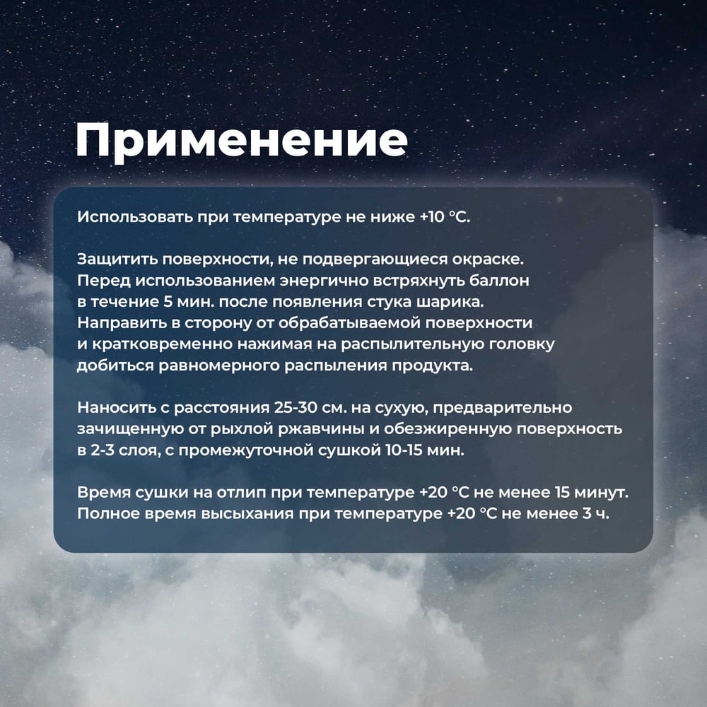 | Способ нанесения | аэрозольное распыление |
