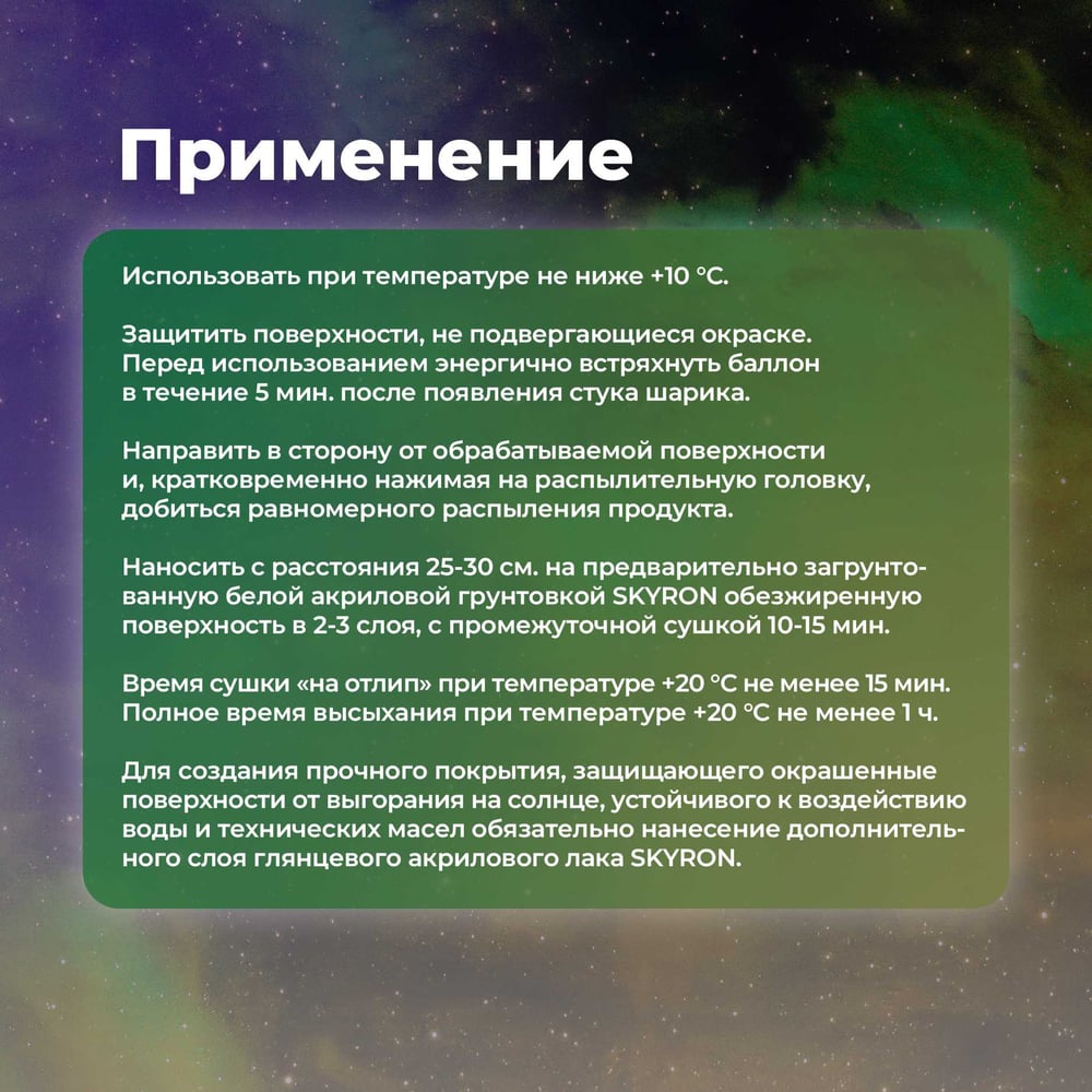 | Способ нанесения | аэрозольное распыление |