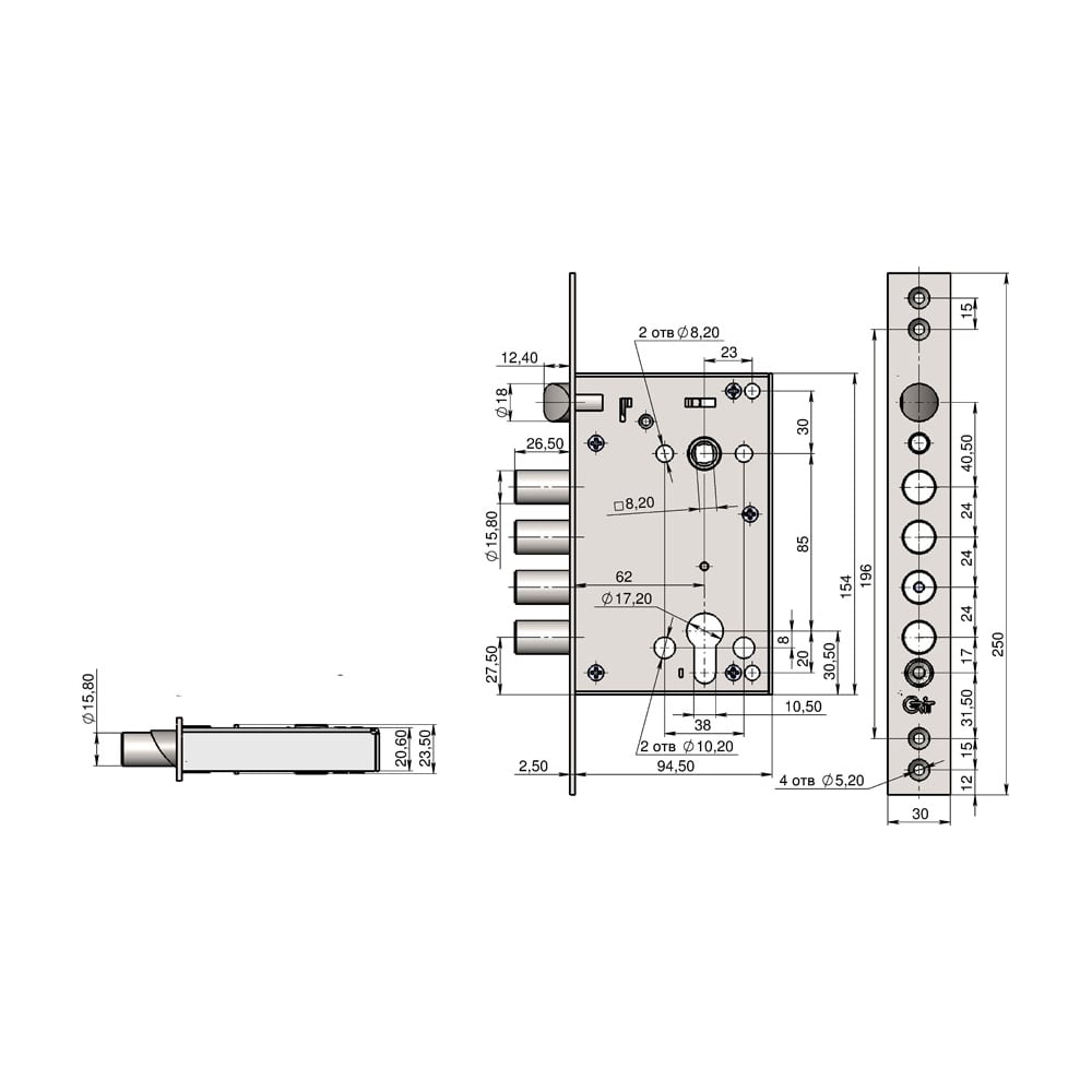 | Удаление ключевого отверстия (Backset) | 62 мм |