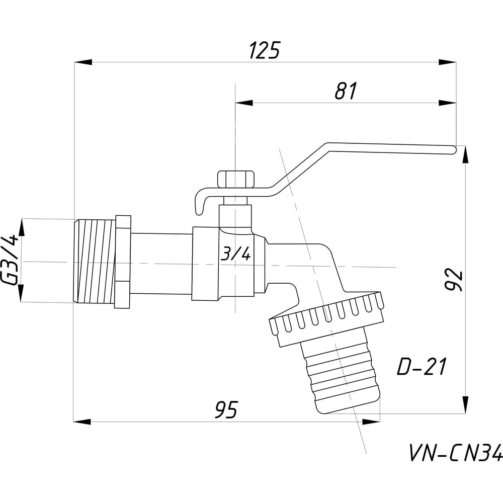 Шаровой кран со штуцером RM 3/4 водоразборный, никелированный, ручка VN-CN34