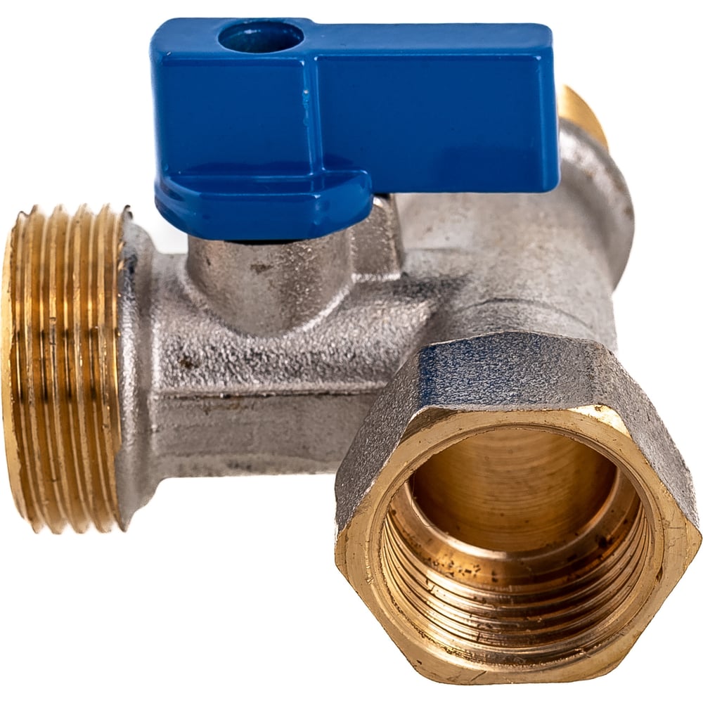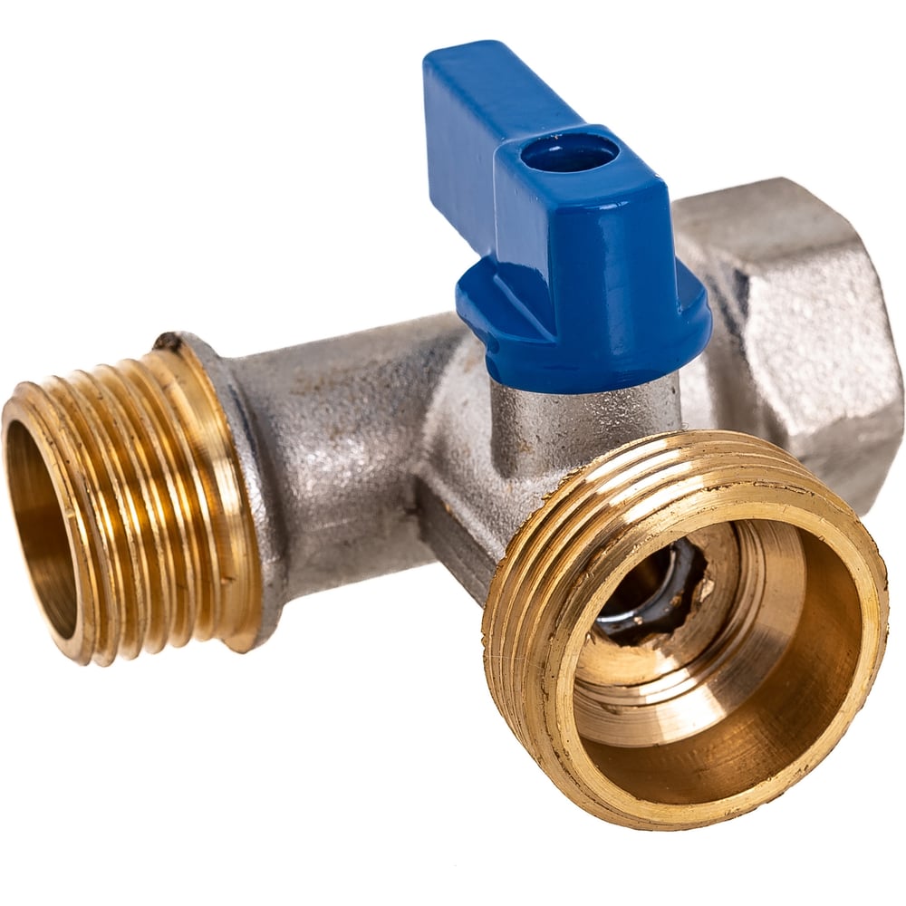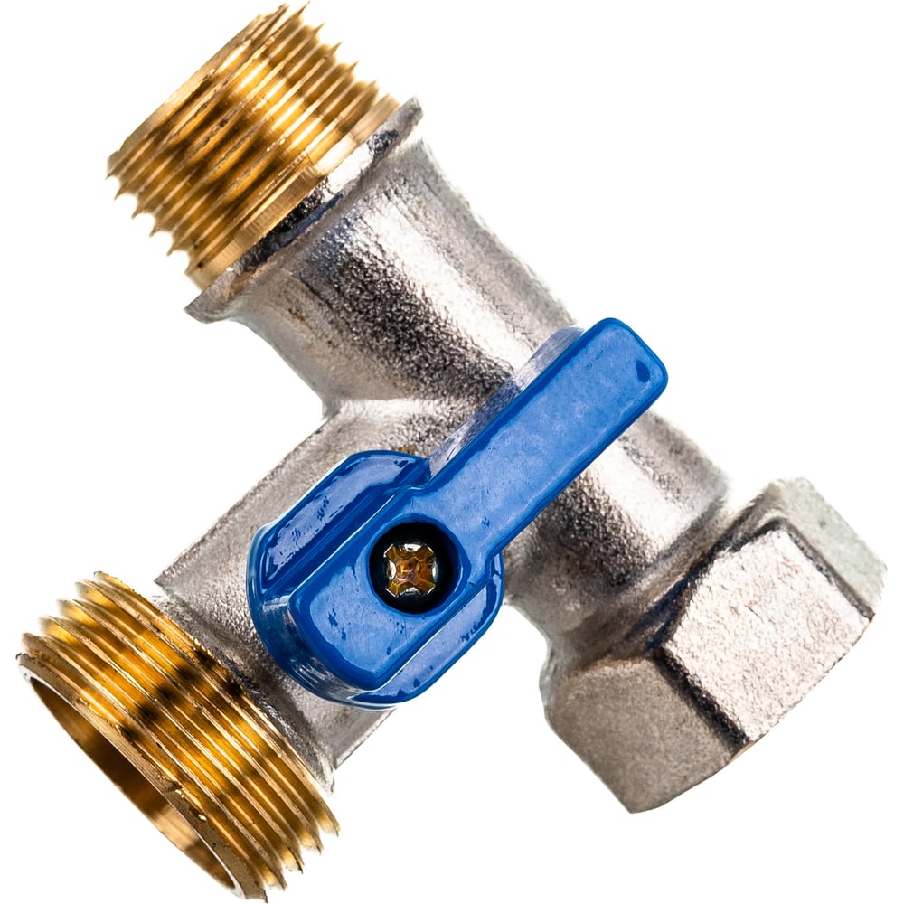 Шаровой кран для стиральной машины RM трёхпроходной, 1/2х3/4х1/2, никелированный -3WFMM