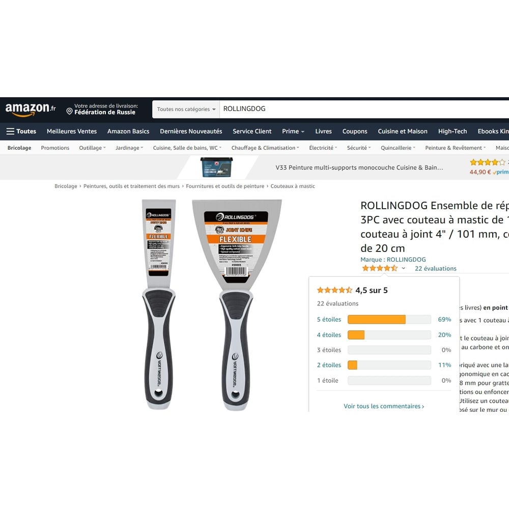 Гибкий шпатель ROLLINGDOG Joint knife из углеродистой стали № 50 премиум-класса, 101 мм., запатентован, 50005