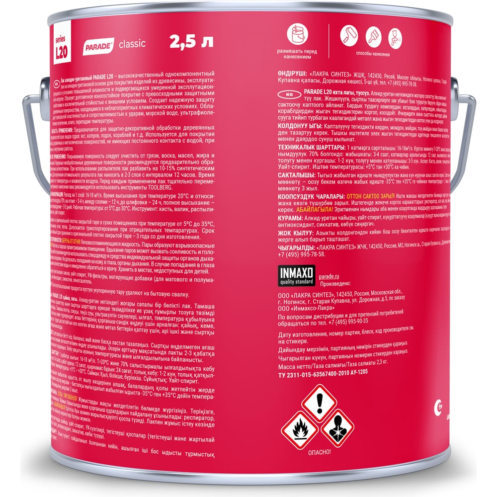 Лак яхтный алкидно-уретановый PARADE L20 Яхты & Лодки полуматовый 2,5 л Россия 90001484885
