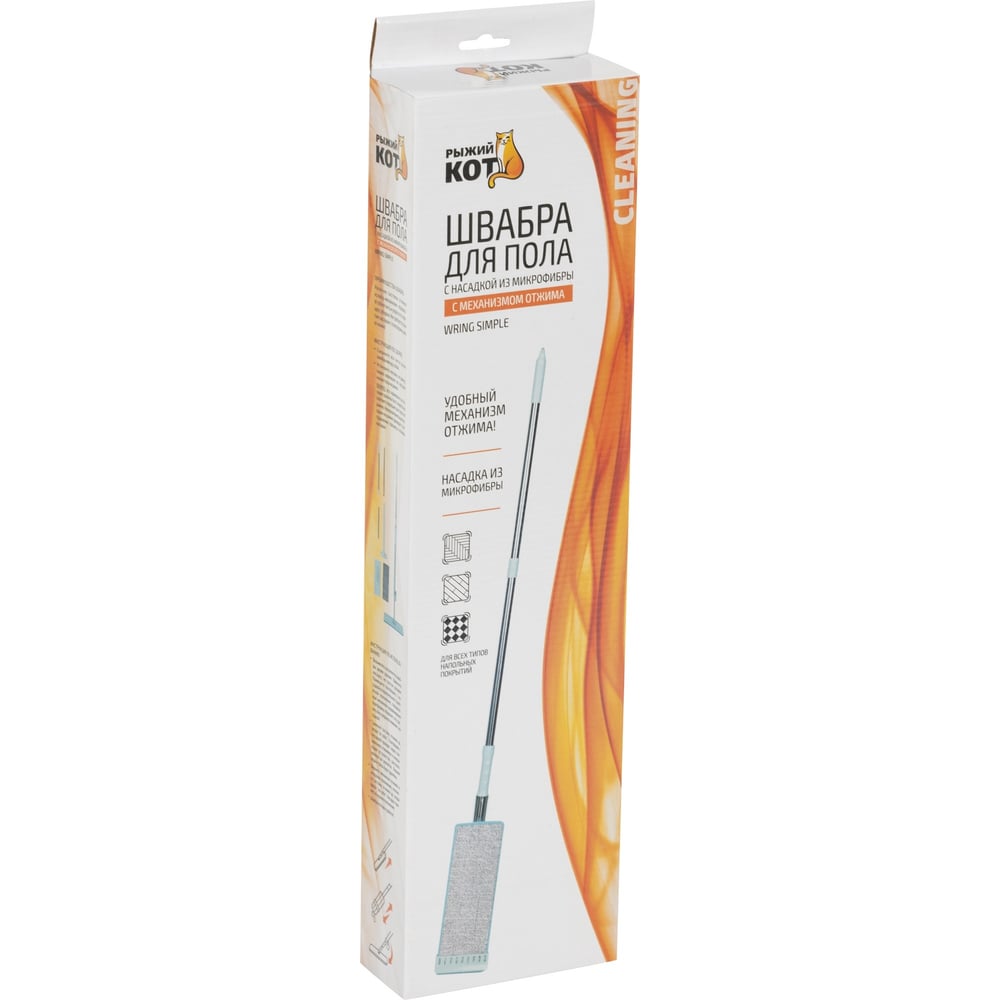 Швабра для пола Рыжий кот WRING SIMPLE с механизмом отжима и насадкой из микрофибры 102536
