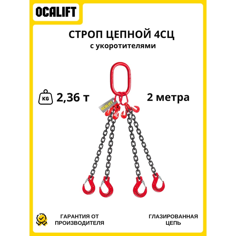 Цепной строп OCALIFT 4СЦ 2,36 т, 2 м, с укоротителями и глазированной цепью 8кл G80 4sc2360t2h