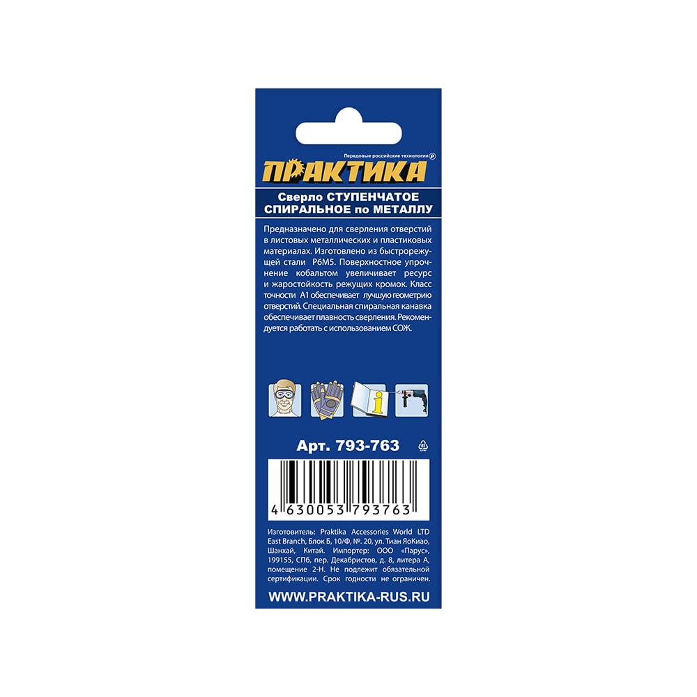 Ступенчатое спиральное сверло по металлу ПРАКТИКА 793-763