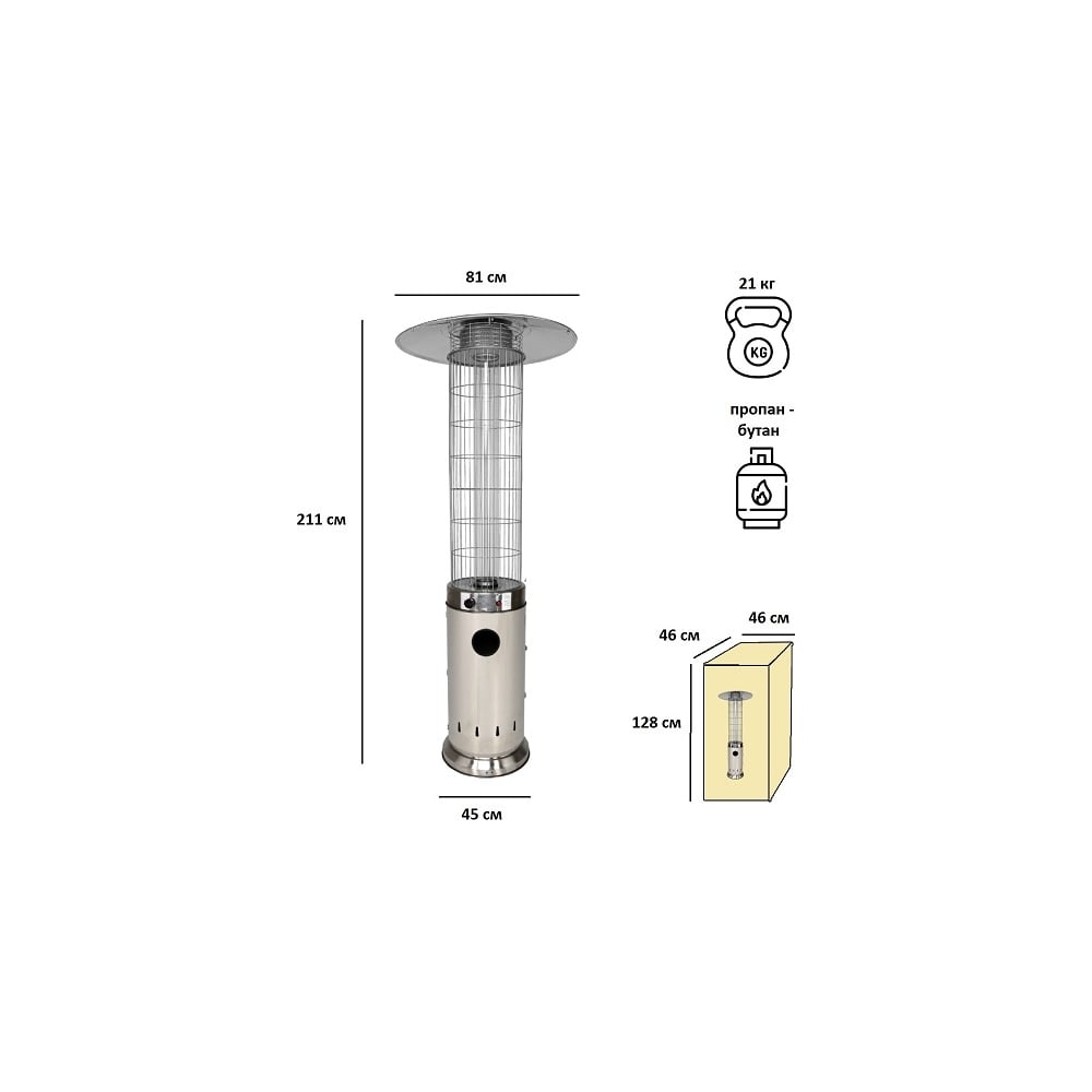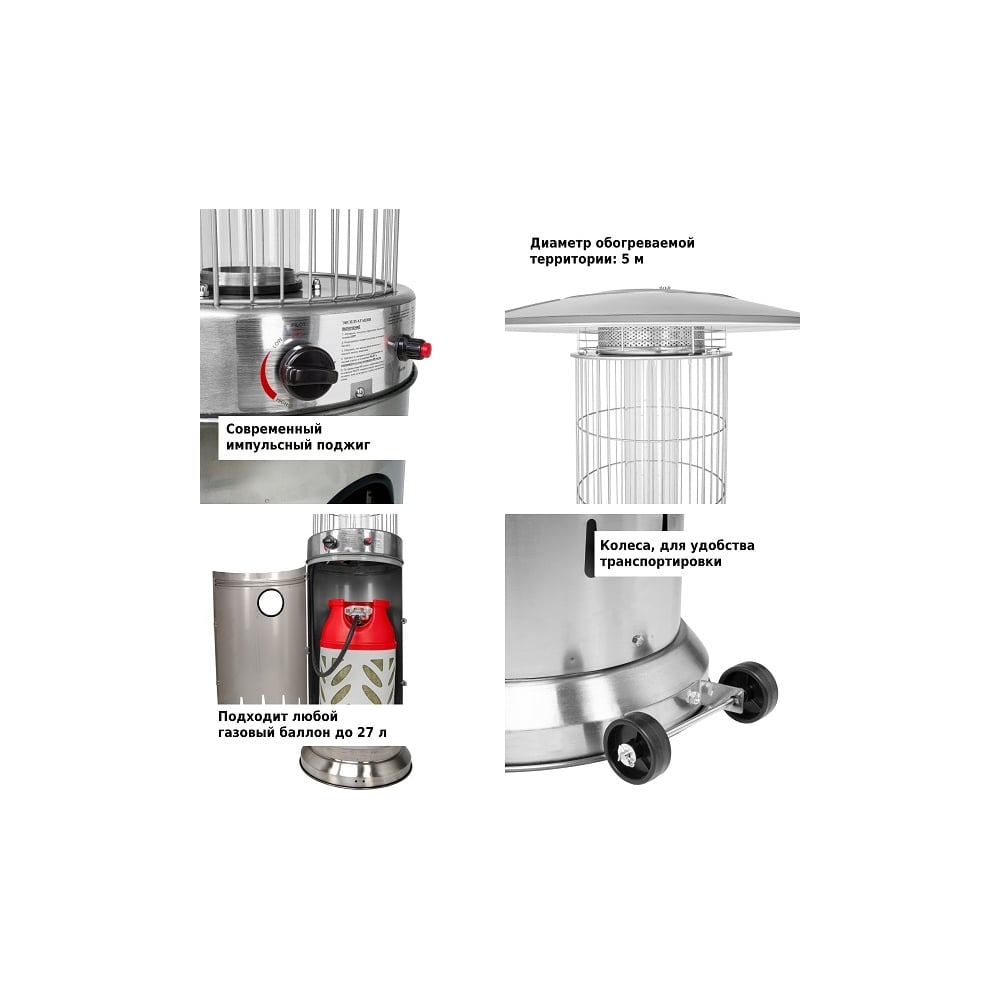 Уличный газовый обогреватель Aesto нержавеющая сталь A-07T