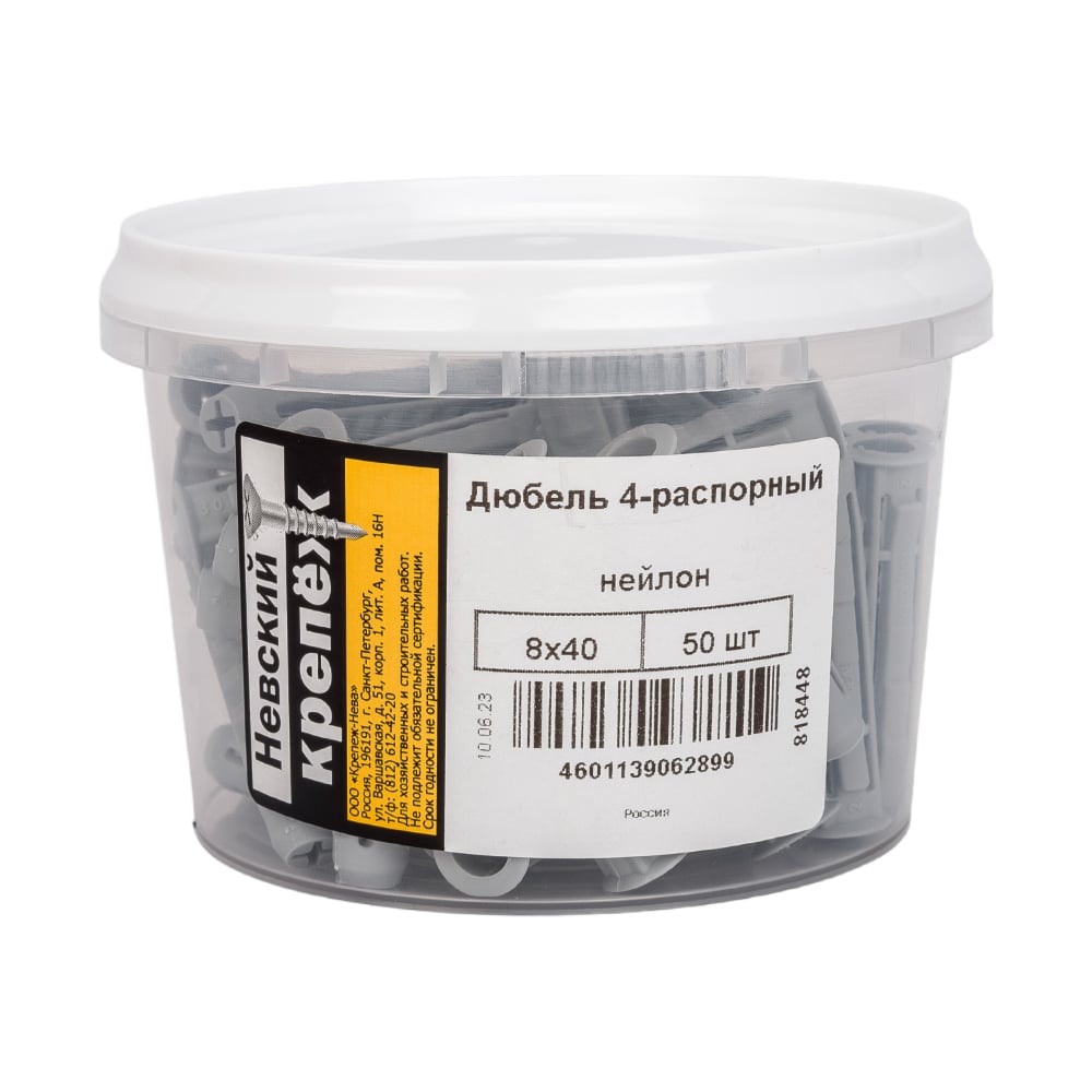 Дюбель Невский Крепеж 4-распорный 8 (8x40), нейлон, 50 шт., ведро малое НК 818448