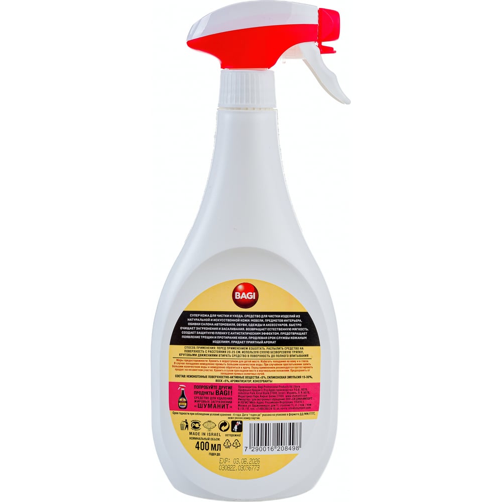 Средство для чистки и ухода за изделиями из натуральной и искусственной кожи Bagi Супер кожа 400 мл 1015024151