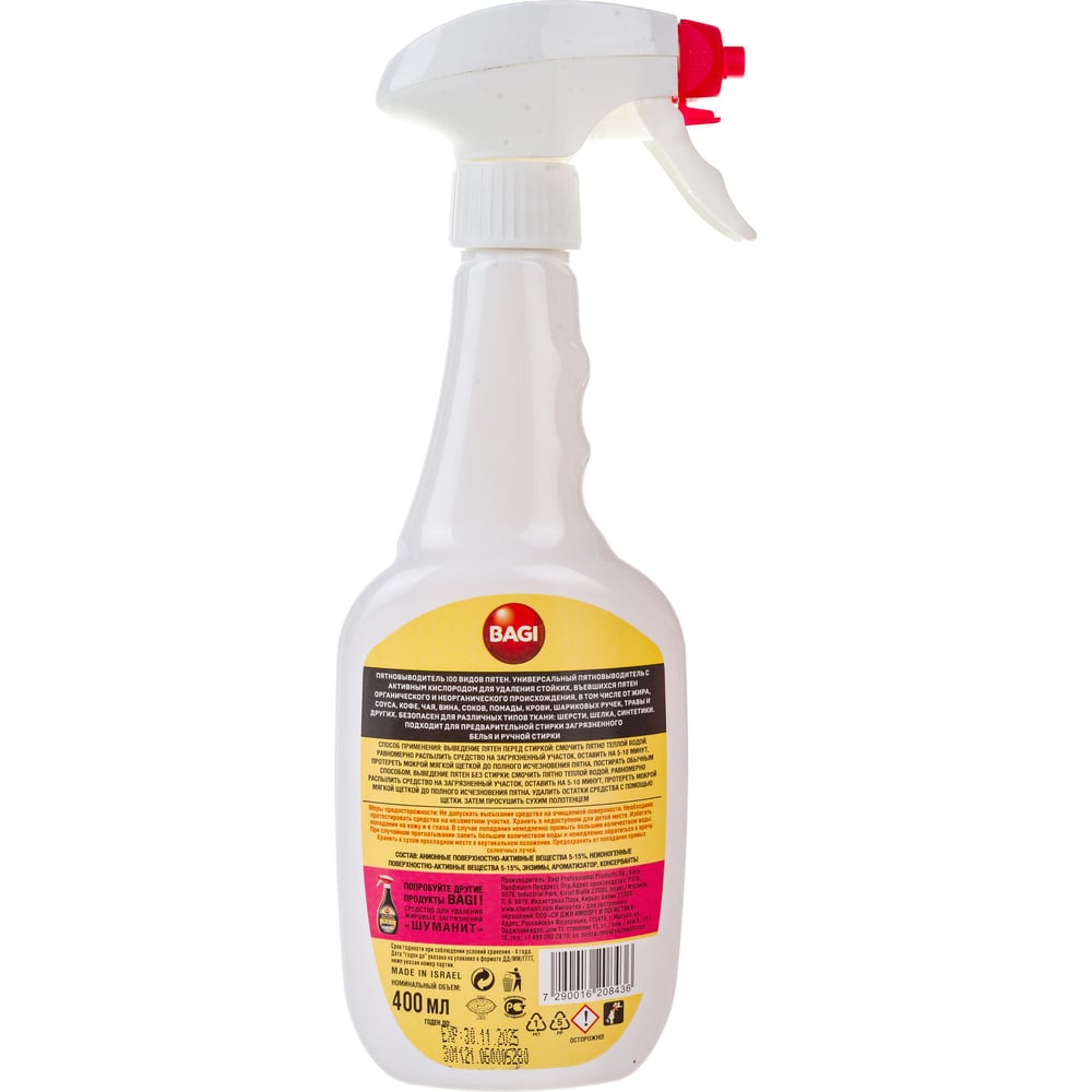 Универсальный пятновыводитель с активным кислородом Bagi 100 видов пятен, 400 мл 1015024160
