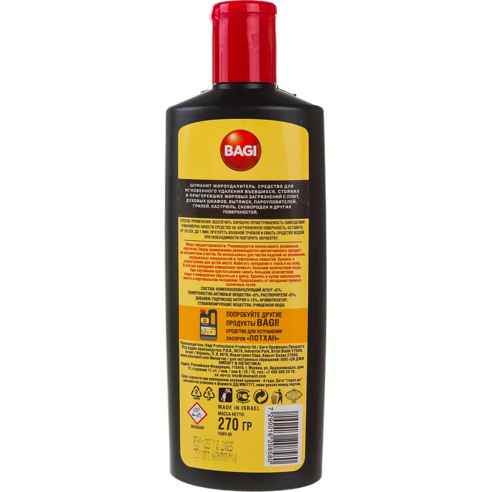 Концентрированный жироудалитель от стойких и пригоревших загрязнений с плит Bagi Шуманит 270 г 1015024131