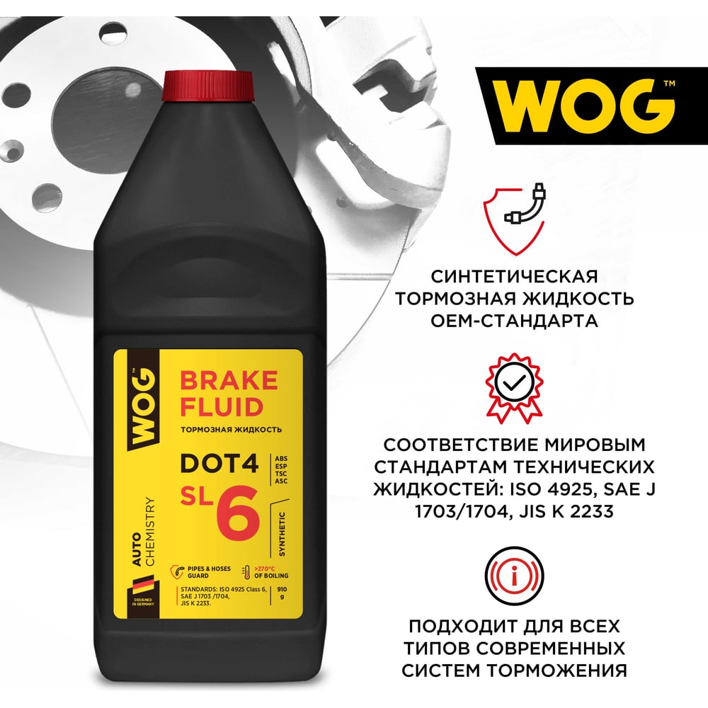 Тормозная жидкость WOG DOT 4, SL6, 1 л WGC0143