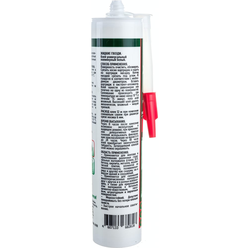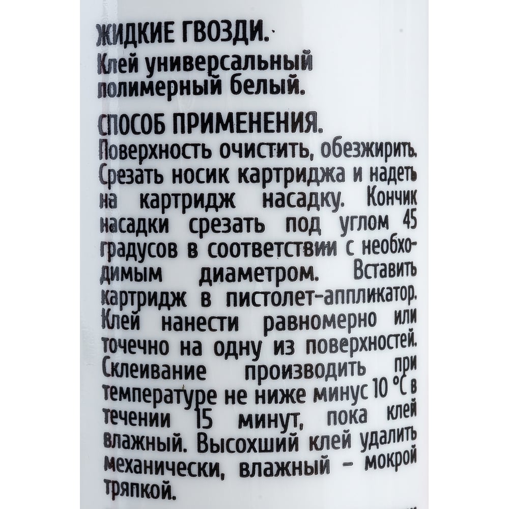 | Склеиваемые материалы | стекло, ДСП, бетон, кирпич, керамическая плитка, элементы из пенополистирола, поливинилхлорида |