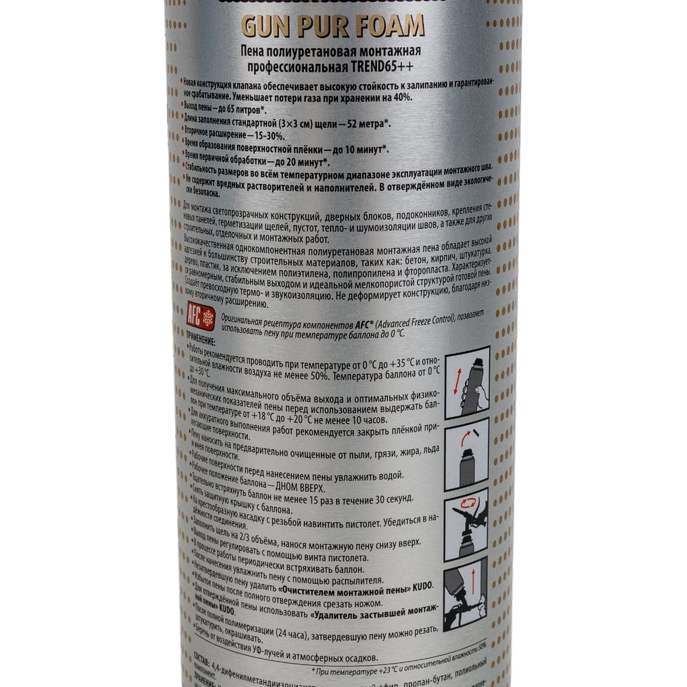 Полиуретановая монтажная пена KUDO TREND 65++ летняя, 1000 мл KUPT10S65++