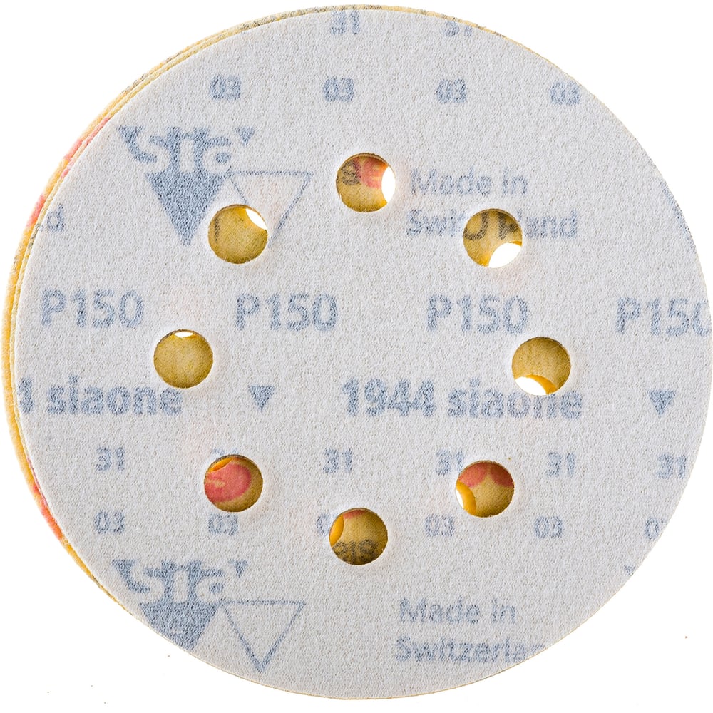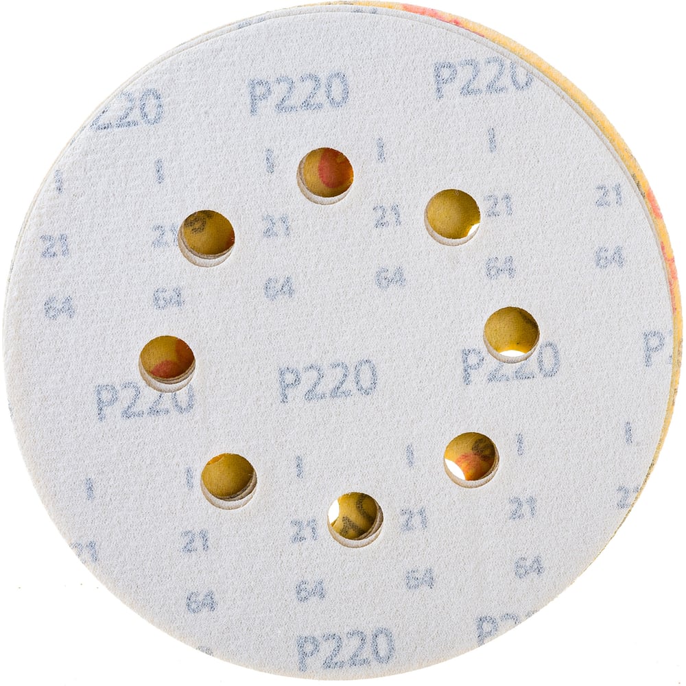 Зернистость 100/150/220 Диаметр 125 мм Количество отверстий 8 Назначение универсальная Основа бумажная Количество в упаковке 6 шт Материал абразива оксид алюминия