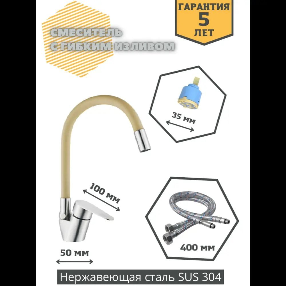 Смеситель для кухни OUTE однорычажный из нержавеющей стали SUS 304, кофейный/хром T40583B-6 T40593B-6