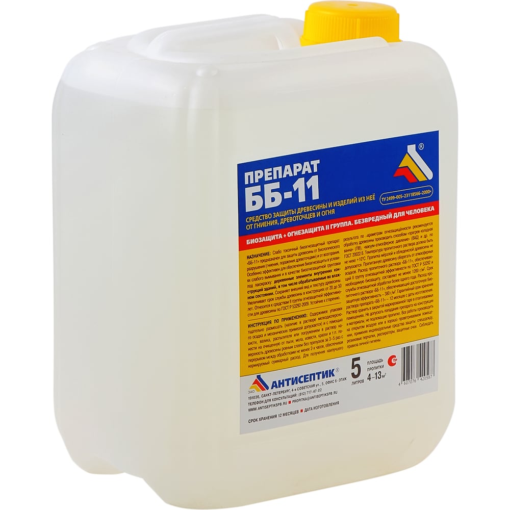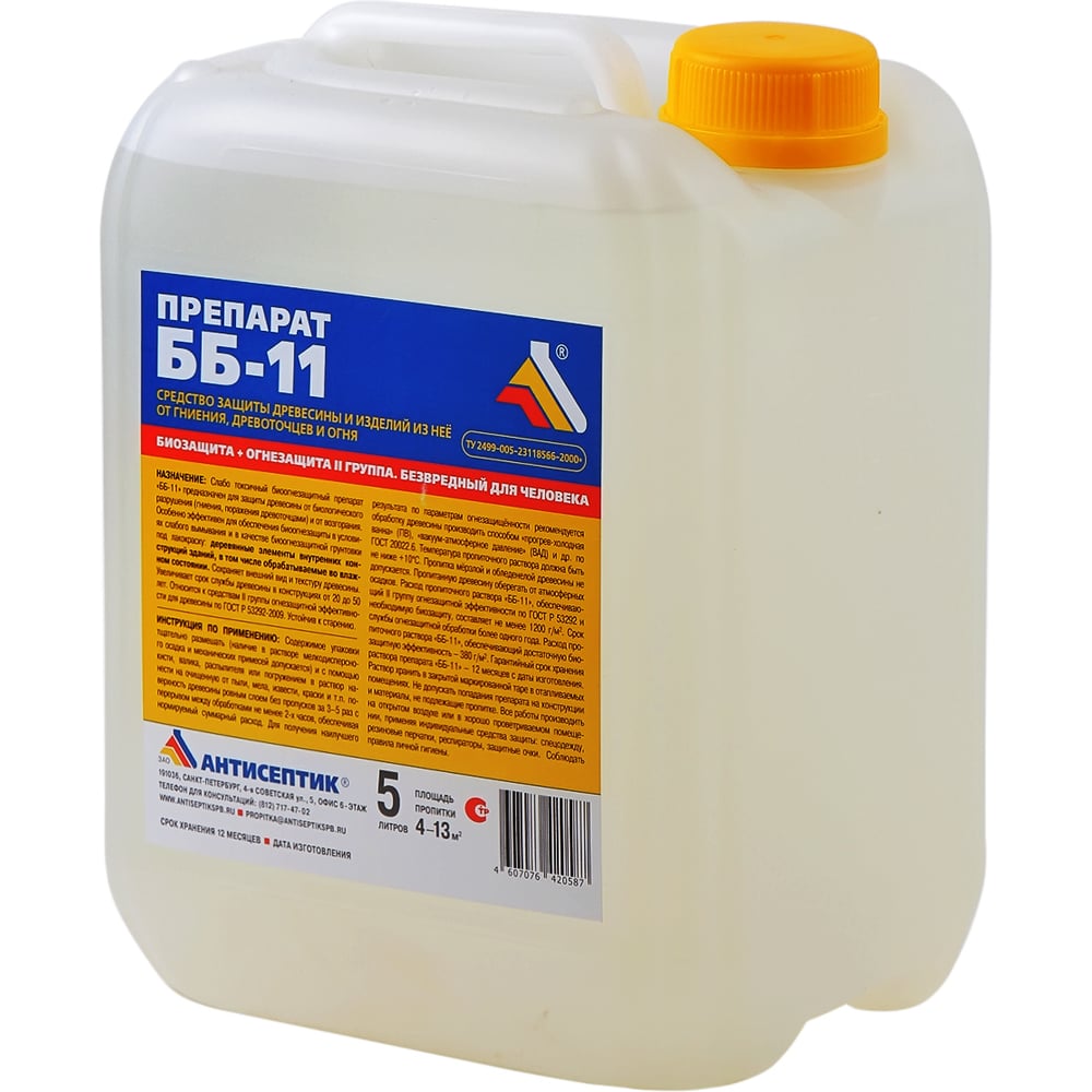 Огнебиозащита ЗАО "Антисептик" ББ-11 в канистре 5 литров 00-00003395