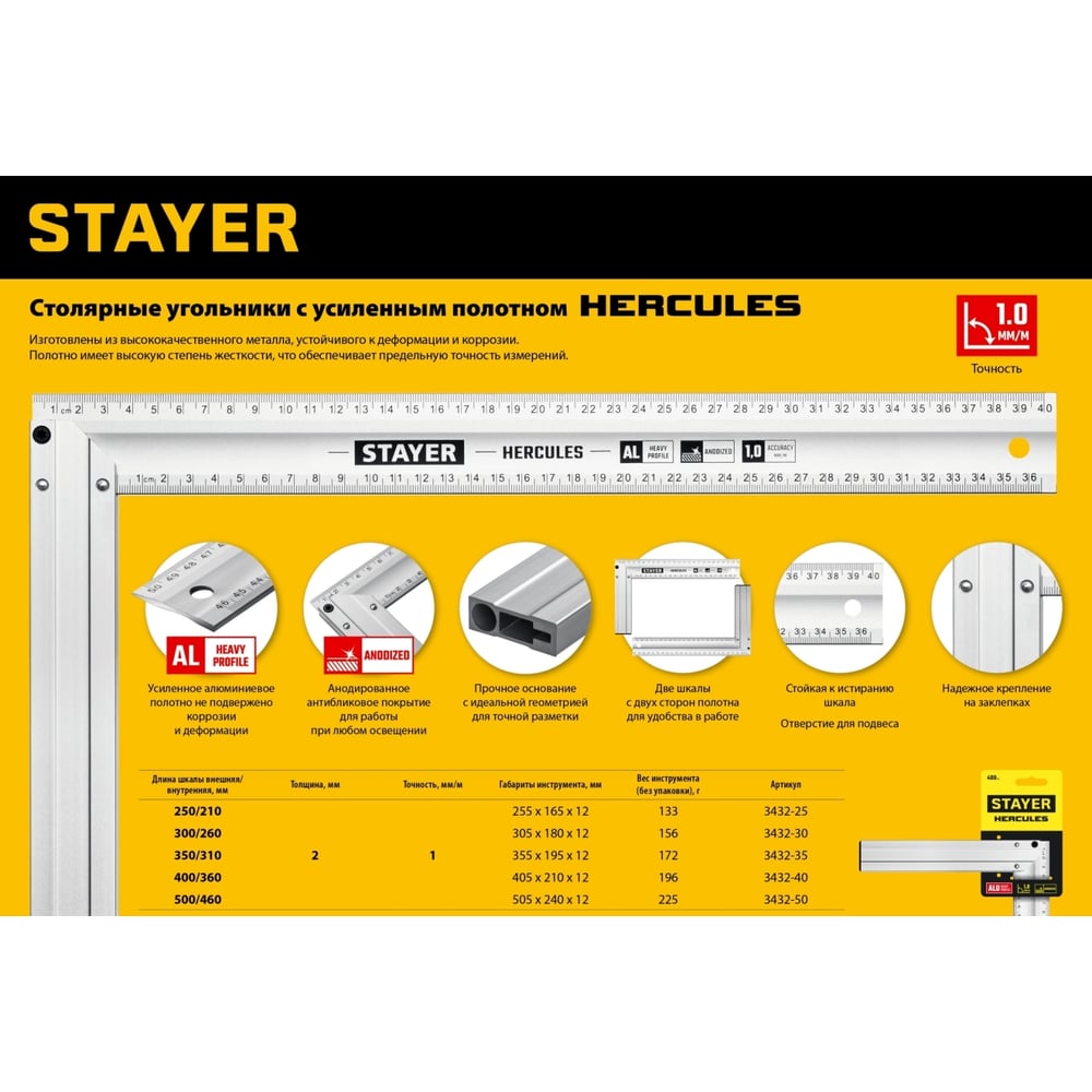 Жесткий столярный угольник STAYER Hercules 3432-50