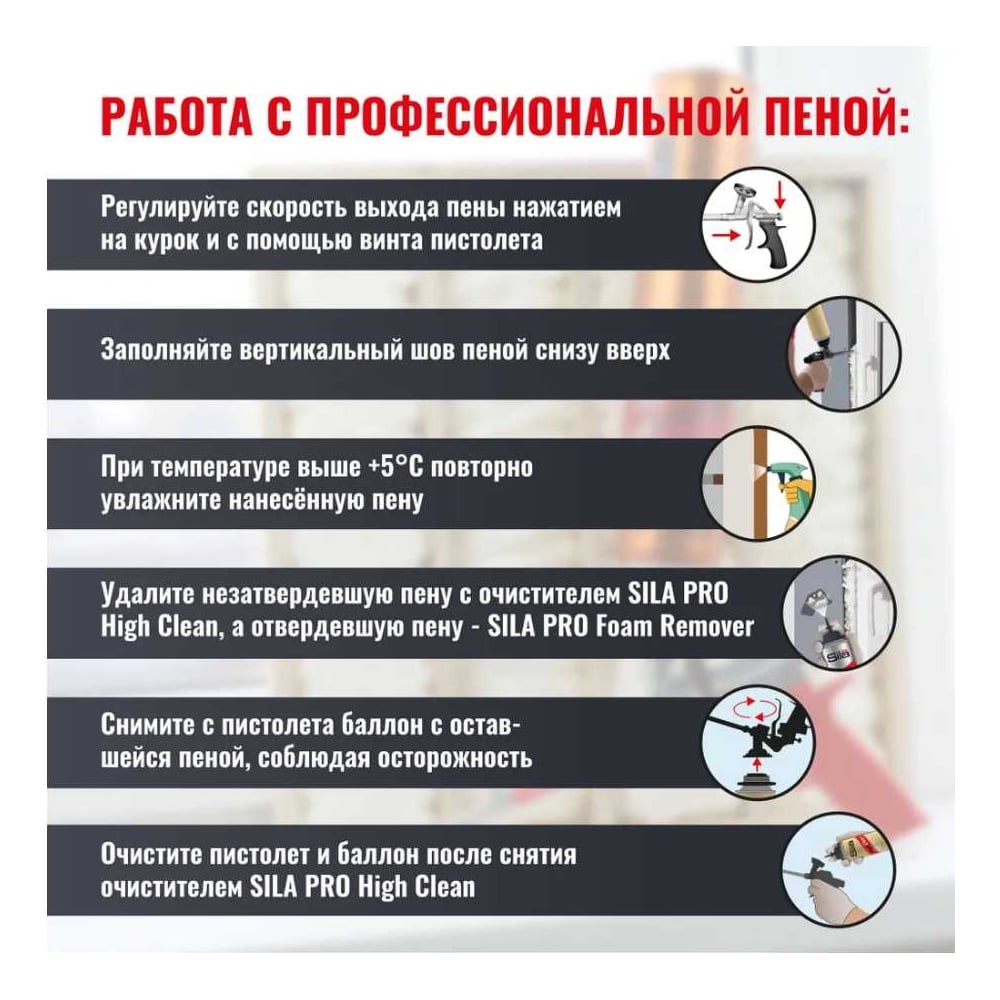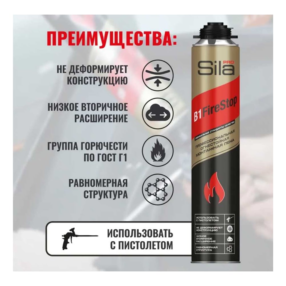 Огнестойкая профессиональная монтажная пена Sila Pro B1 Firestop, 45л, 750 мл SPFR45