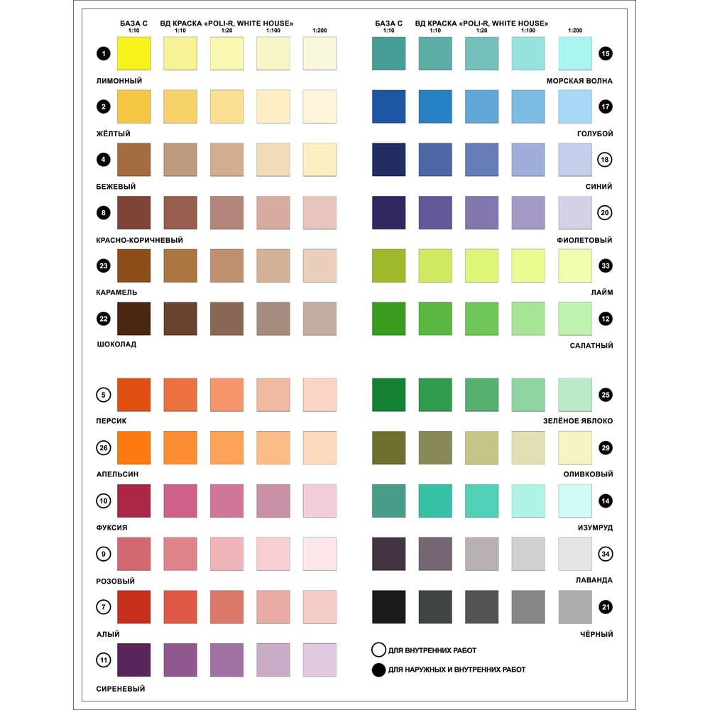 | Для внутренних работ | да |