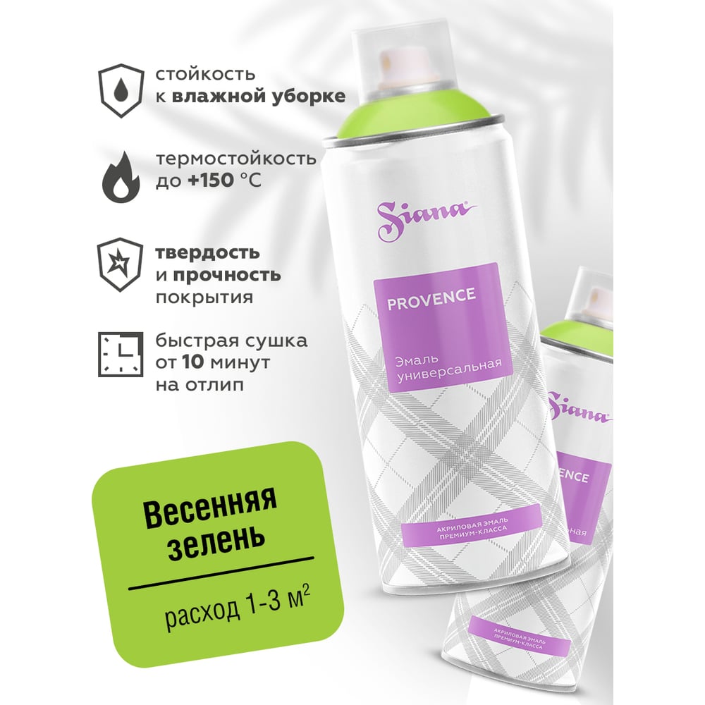 Аэрозольная акриловая краска в баллончике SIANA Provence для мебели, декора, металла, пластика, керамики, стекла, гипса, сухоцветов, цветов, радиаторов, быстросохнущая, весенняя зелень SNP002