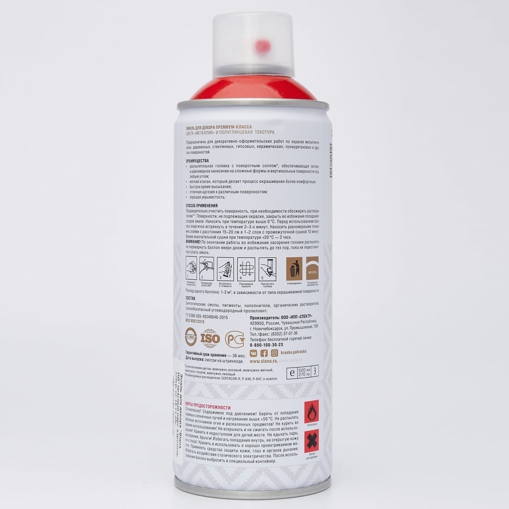 Аэрозольная акриловая краска Siana High Quality для мебели, декора, металла, пластика, керамики, стекла, гипса, сухоцветов, цветов, быстросохнущая, металлик, красный марс SNM010