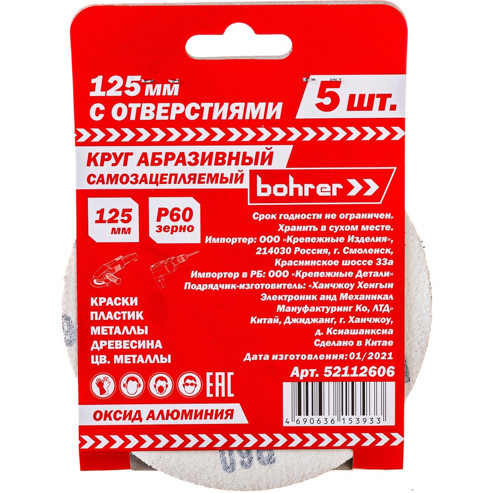 Круг абразивный под липучку (125 мм; Р60; 8 отверстий) BOHRER 52112606