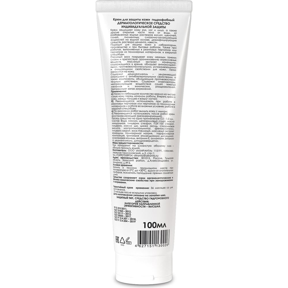 Гидрофобный крем для защиты кожи АЛИРАНТА 100мл 10015