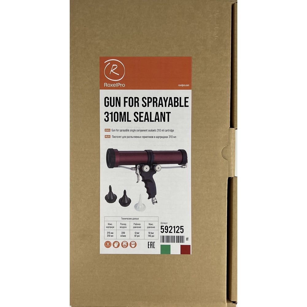 Пистолет для нанесения распыляемых герметиков RoxelPro в комплекте с насадками 592125