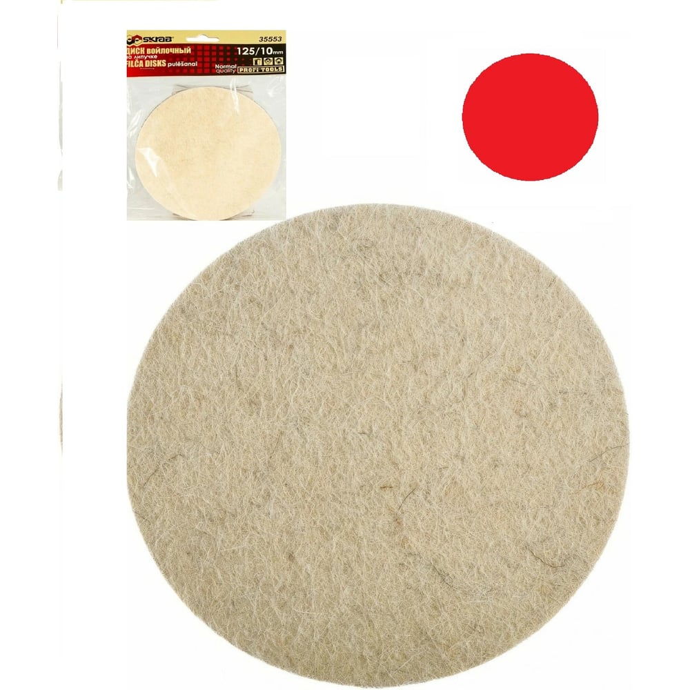 Диск войлочный на липучке SKRAB 125х10мм Normal КРАСНЫЙ 35553
