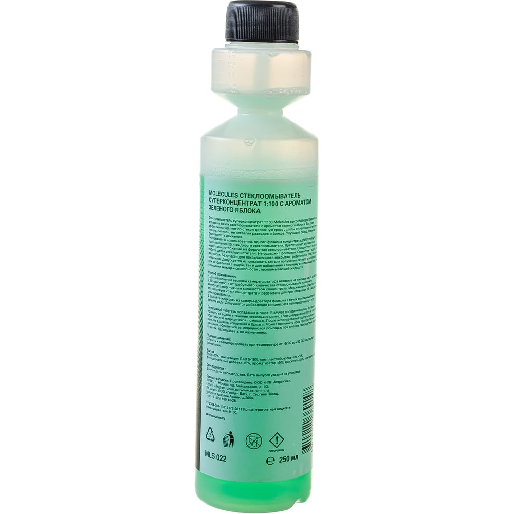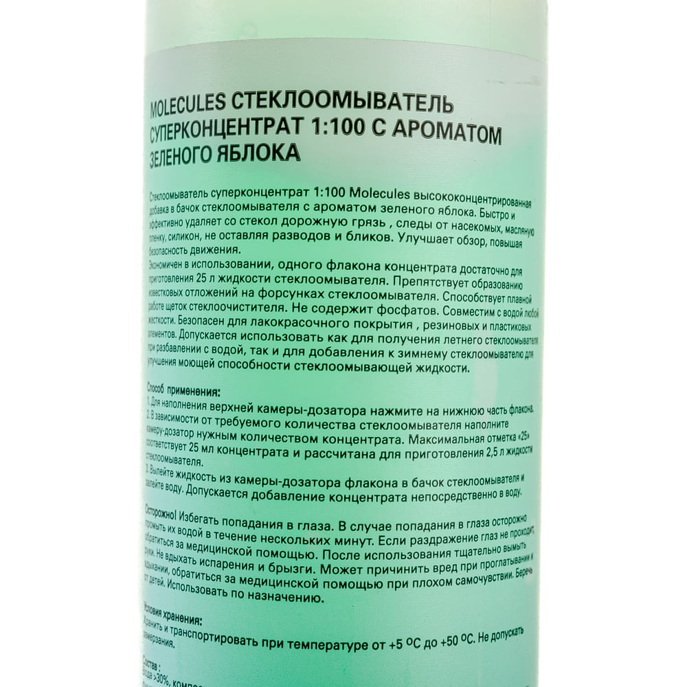 Стеклоомыватель суперконцентрат Molecules Crystal Glass 1:100, Яблоко, 250 мл MLS022