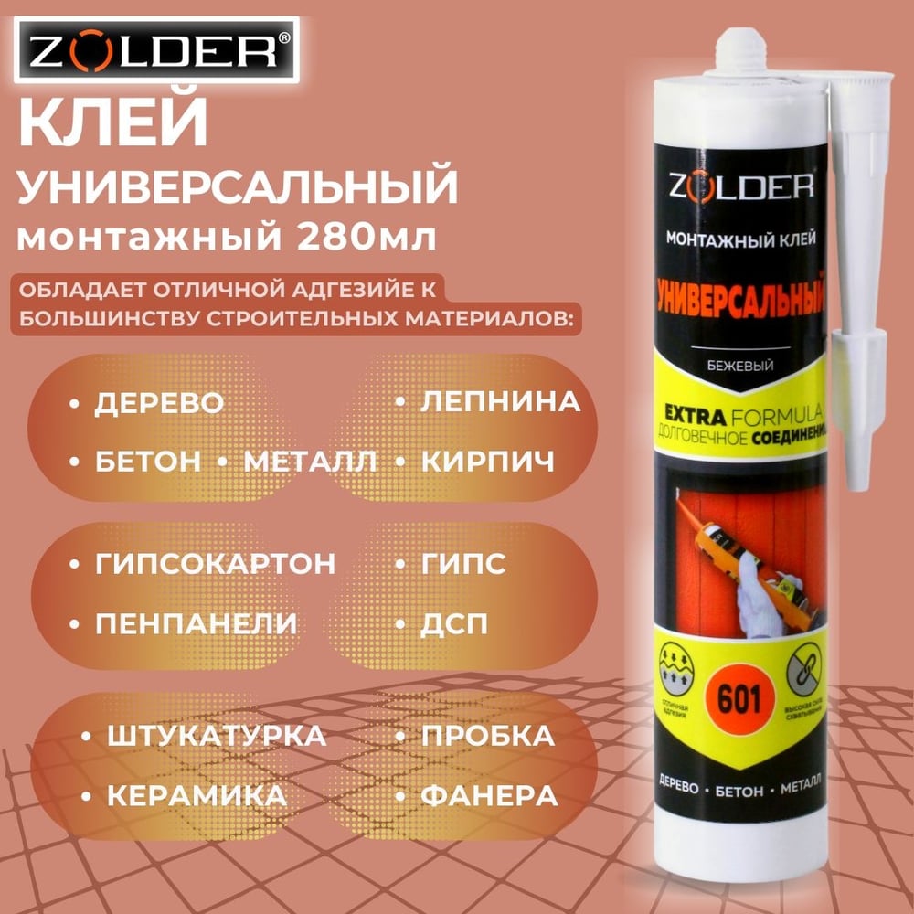 | Склеиваемые материалы | дерево, пластик, ПВХ, гипсокартон, пенопласт, металл, камень, керамика |